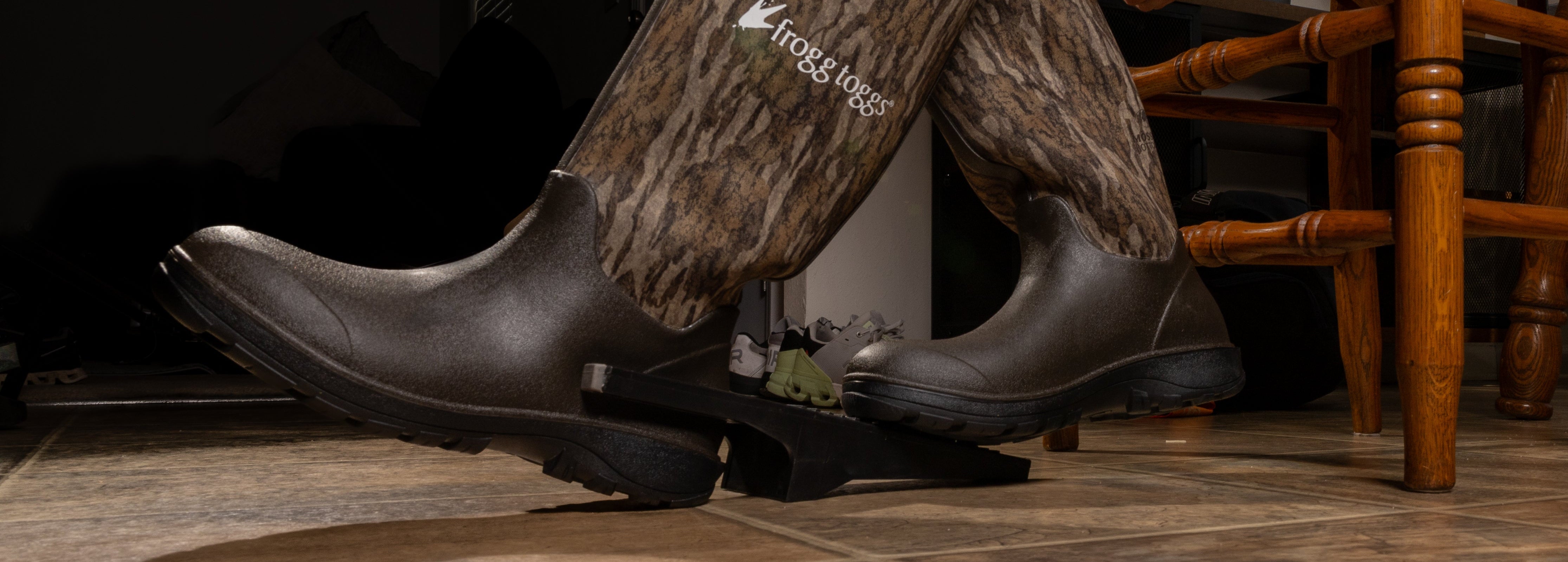 frogg toggs® carries all the footwear accessories you need for your next outdoor adventure, from waterproof overshoes and insoles to boot studs and hangers. Keep dirt, sand, and debris out of your boots and shoes with protective gravel guards; easy-fit, neoprene wading booties slip on inside your footwear for added comfort and protection; store boots and waders on a sturdy hanger so they’re dry and ready to go when you are. Whether you're putting on your boots at the start of the day or pulling them off at the end of your adventure, trust frogg toggs for reliable footwear maintenance and storage accessories.
