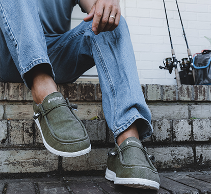 Our men's footwear collection includes a variety of boots, slides, and shoes constructed with cushioned insoles, rugged uppers, and traction outsoles. Men’s waterproof shoes make pursuits in aquatic environments drier and more enjoyable; cleated boots and wading shoes provide extra grip on slick stones and muddy riverbanks. And when the work is done, relax or take a walk wearing attractive and comfortable flip-flops, athletic sneakers, or boat shoes. Don't let soggy shoes or slippery soles ruin your next adventure; find your new favorite frogg toggs shoes in our men’s footwear collection.