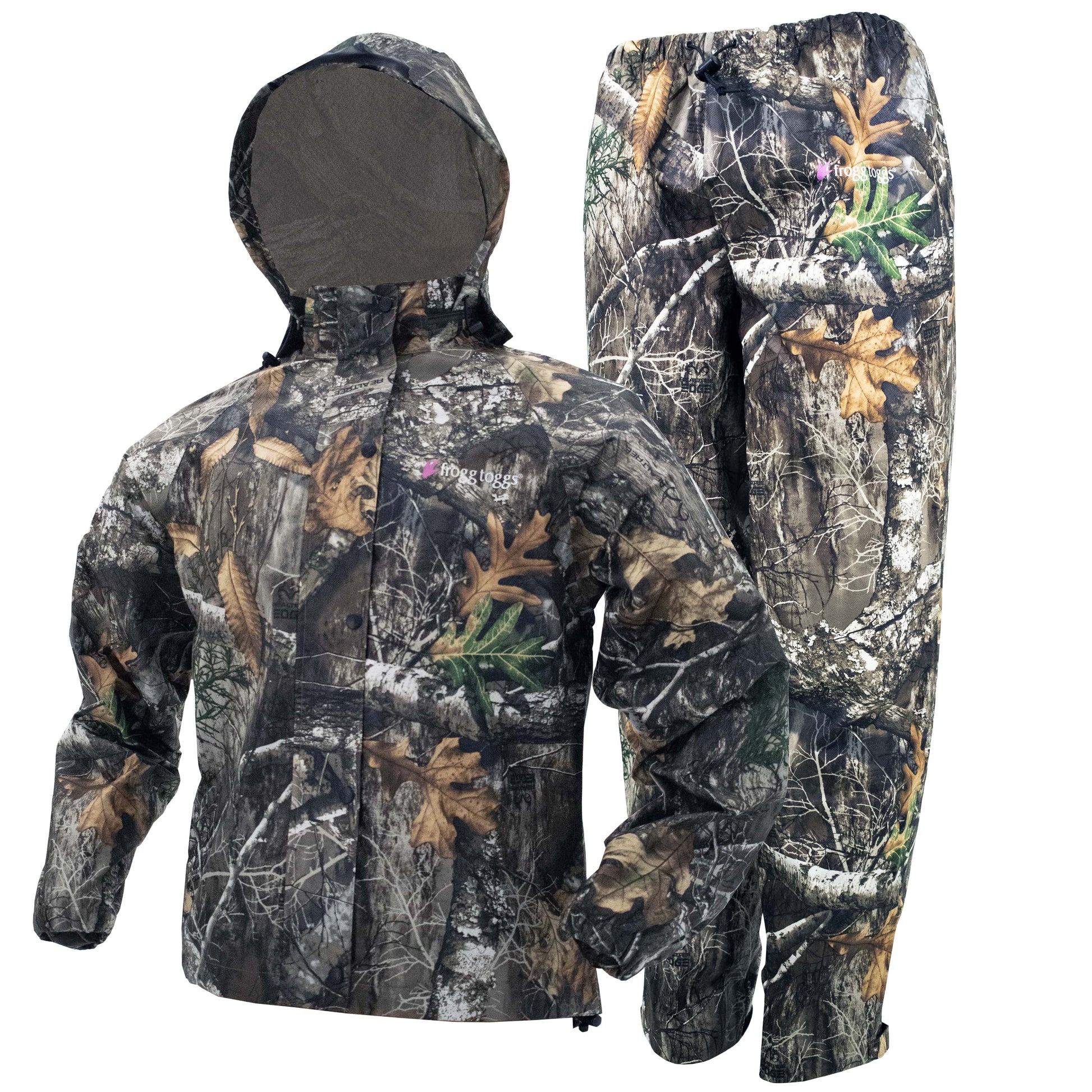 The Frogg Toggs Women’s All Purpose Rain Suit includes both a jacket and pant. The Jacket features an adjustable, tuck-away hood with E-Z push cord locks to protect the user’s head and hair. The jacket comes in a full-length parka cut and sports a front zip with snap-down storm flap to keep moisture out. The jacket’s elastic cuffs and shock cord/barrel lock adjustable waist ensure a perfect fit. The pant features an adjustable, elastic waist and leg openings with a straight-leg design. The camo option is perfect for hunting!