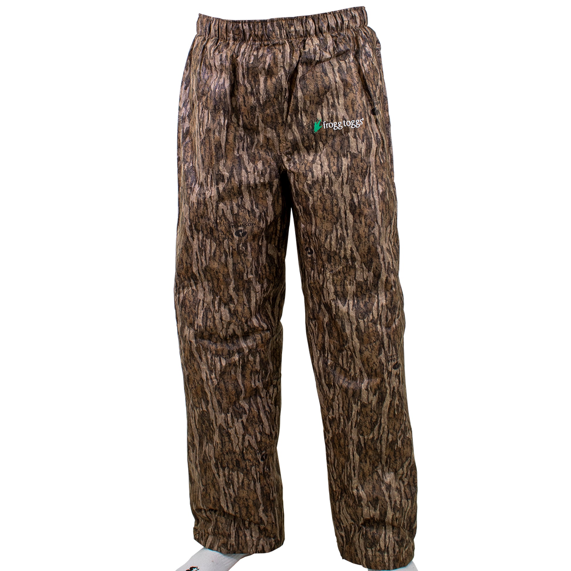 The two-piece frogg toggs® All Sport Waterproof Rain Suit is packable, portable, durable, and comes in a variety of colors and camouflage patterns. This two-piece rain suit is made from our signature 2-ply fabric: the interior is fiber-based for breathability and the film-based outer shell offers waterproof protection in inclement weather. The rain jacket features a full hood with a draw cord barrel lock for easy adjusting, a full-length front zipper with snap-down storm flap for extra protection, comfortable elasticized cuffs at the wrists, and raglan sleeves for improved range of movement. The rain pants feature a four-panel cut with an elasticized adjustable waist for a snug yet comfortable fit, and large leg openings that make it easy to pull on pants over shoes and boots. Both the rain jacket and pants feature fully taped and sealed seams. Protect yourself in any weather wearing the two-piece frogg toggs® All Sport Waterproof Rain Suit.