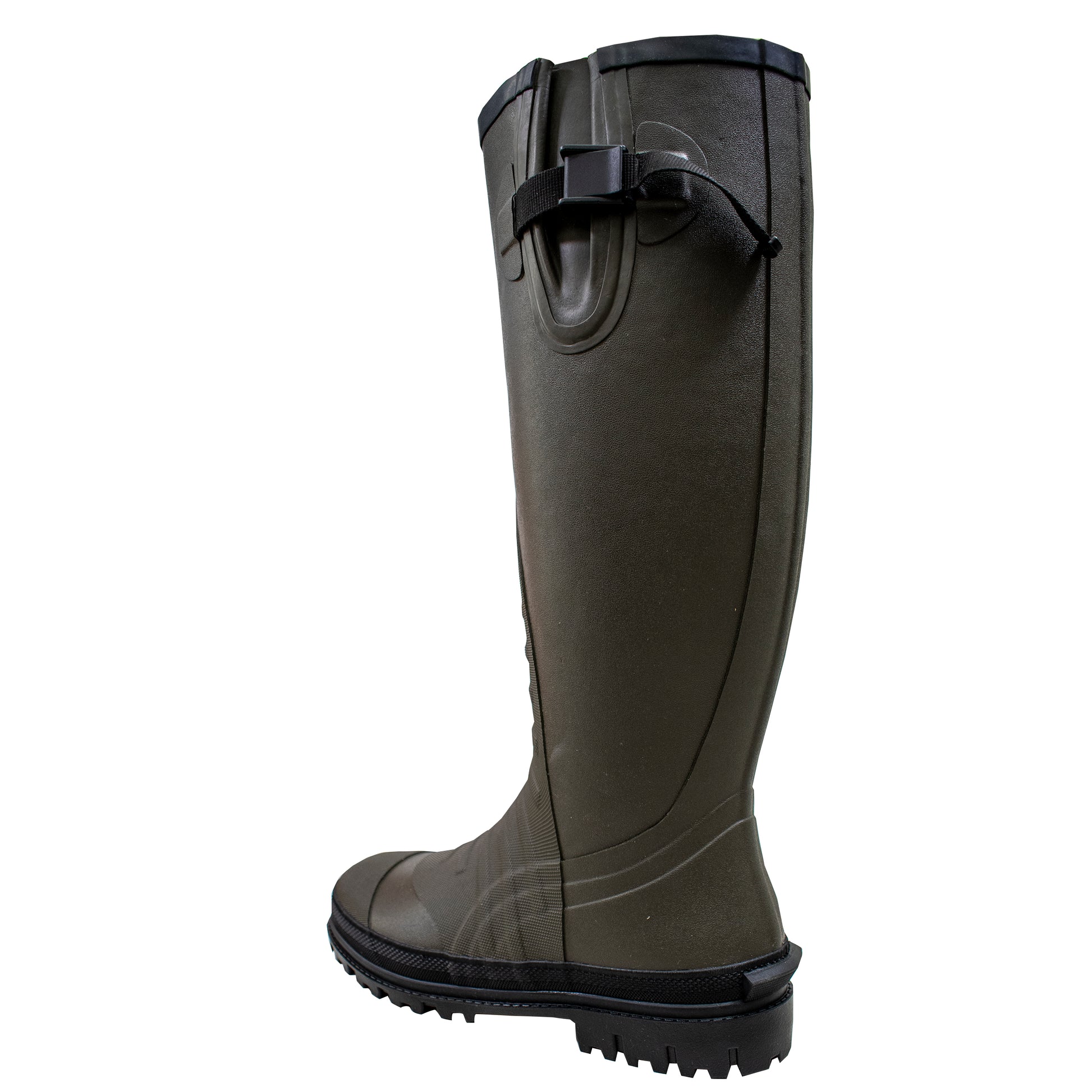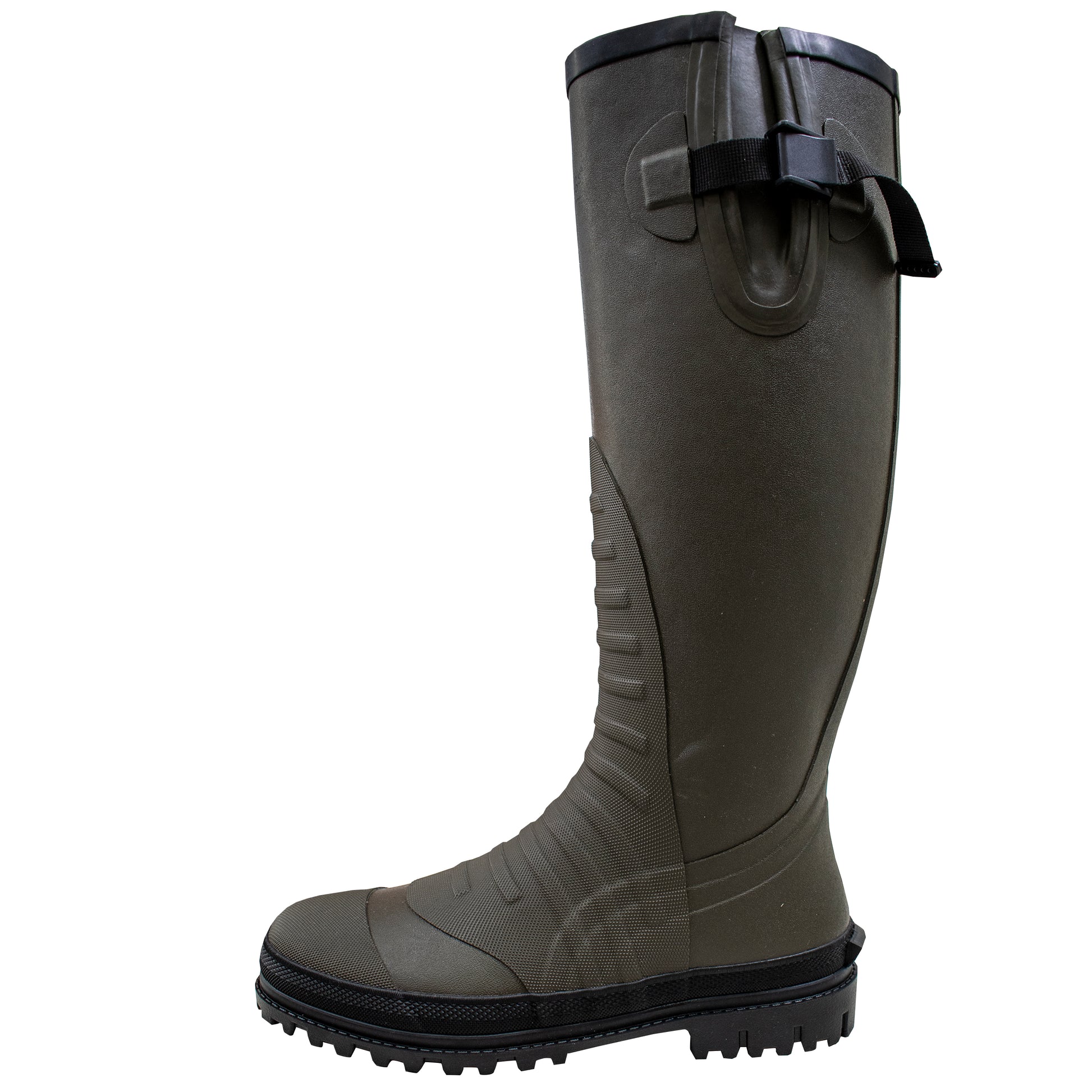 Introducing the waterproof Cascades® Rubber Knee Boot—your ultimate solution for unbeatable protection and durability in wet weather. Constructed in 100% waterproof vulcanized rubber and featuring a side gusset with an adjustable strap and buckle, these boots promise a secure fit in any condition. The self-cleaning rubber outsole and steel shank provide reliable traction and support, while shovel guards add extra strength and durability. Stay dry and confident in the harshest environments outfitted in our Cascades® Rubber Knee Boot.